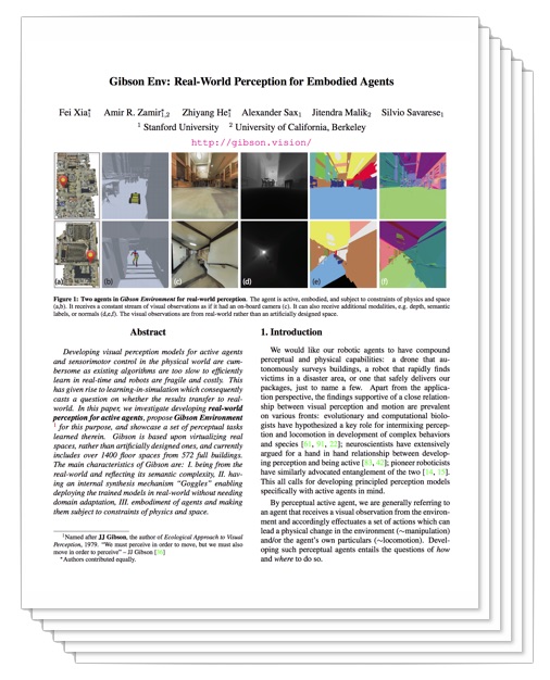 Gibson Environment for Real-World Perception Learning. We are opensourced on Github. Check it out and train perceptual agents.